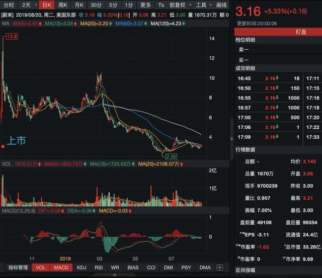 截至今年7月,蔚來兩款車?yán)塾嫿桓?9727輛,其中今年交付量達到8379輛。而此前,蔚來制定的2019年銷量目標(biāo)為4-5萬輛,從目前的交付量來看將遠(yuǎn)遠(yuǎn)不及預(yù)期。與此同時,蔚來傳聞已久的大裁員又有細(xì)節(jié)傳出。有知情人士透露,蔚來位于美國硅谷的分公司正在縮減規(guī)模,截至美東時間8月16日已裁減100名員工。最新這一輪裁員在今年7月份就已基本確定,當(dāng)時確定的人數(shù)為150人。蔚來汽車創(chuàng)始人兼董事長李斌近日首次回應(yīng)裁員傳聞稱,過去蔚來汽車員工已接近一萬人,本次減員是為了優(yōu)化、更快地提升運營效果。車市寒冬,新勢力造車企業(yè)正在面臨考驗,艱難歲月,更要精益求精。近日還有媒體報道稱蔚來正計劃回科創(chuàng)板上市,同時已經(jīng)關(guān)閉了其硅谷辦公室。對此,蔚來官方回應(yīng)稱皆為不實報道,并表示硅谷辦公室是蔚來全球戰(zhàn)略布局的重要一環(huán),一直處于正常的運營狀態(tài)。蔚來目前把體系化效率提升作為工作重點,員工優(yōu)化會有序地進行。近期沒有回科創(chuàng)板的計劃。蔚來汽車去年9月登陸美股之初曾一路走高,沒幾天便創(chuàng)出13.8美元的新高價。然而就目前來看,上市即巔峰,從當(dāng)時至今不到1年的時間,蔚來股價不斷走低,最新價在3美元上方,較當(dāng)時高點跌幅超70%。